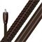 KALTGESCHWEISSTE DIREKTVERSILBERTE REINE “PURPLE-COPPER”-STECKER: Dieser Steckeraufbau erlaubt die Verbindung ohne Lot – denn dieses ist eine verbreitete Störquelle. Weil die Endhülsen gestanzt anstatt maschinenbearbeitet werden, kann das Metall im Hinblick auf niedrige Verzerrungen anstatt auf Maschinenbearbeitbarkeit ausgewählt werden. Purple-Copper bietet einen reineren, klareren Klang als nickelbeschichtete oder OFHC-Metalle, die häufig in Steckern der Mitbewerber zu finden sind. Die Direktversilberung stellt einen weiteren wichtigen Schritt hin zu größerer Klarheit dar, ohne das Signal zu beeinträchtigen.