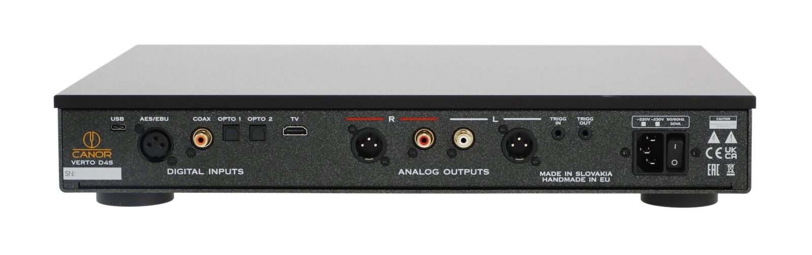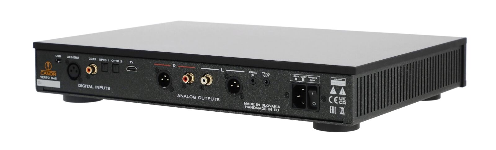 - Die analoge Ausgangsstufe ist vollständig diskret und symmetrisch aufgebaut, frei von Operationsverstärkern, und bietet einen hohen Dynamikumfang bei extrem niedrigem Rauschpegel.