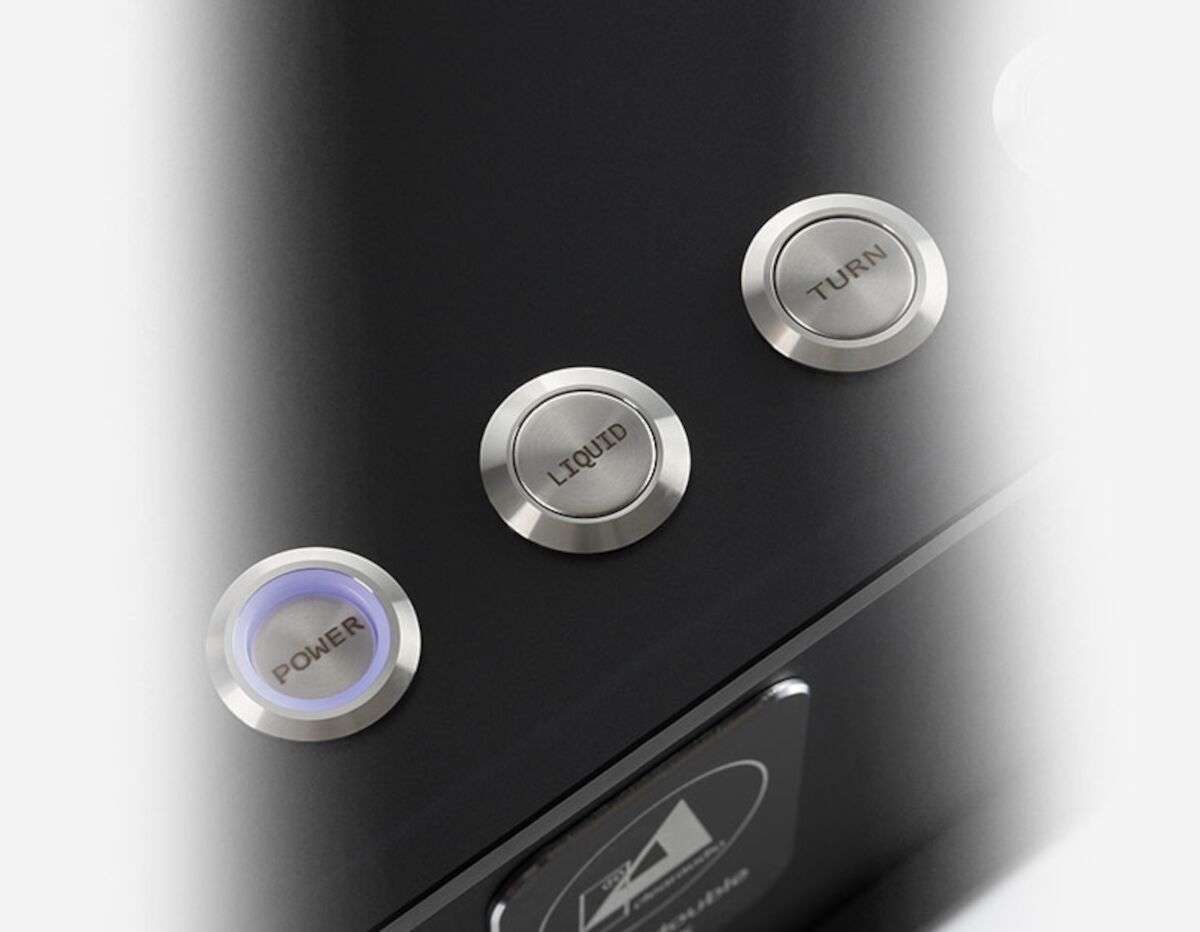 Reinigungsflüssigkeit wird per Knopfdruck dosiert und so individuell an den Verschmutzungsgrad angepasst. Eine stabile Plattenklemme schützt das empfindliche Label während der Reinigung zuverlässig vor Feuchtigkeit. Die geräuscharme Absaugturbine trocknet die Schallplatte kraftvolle und zugleich leise.