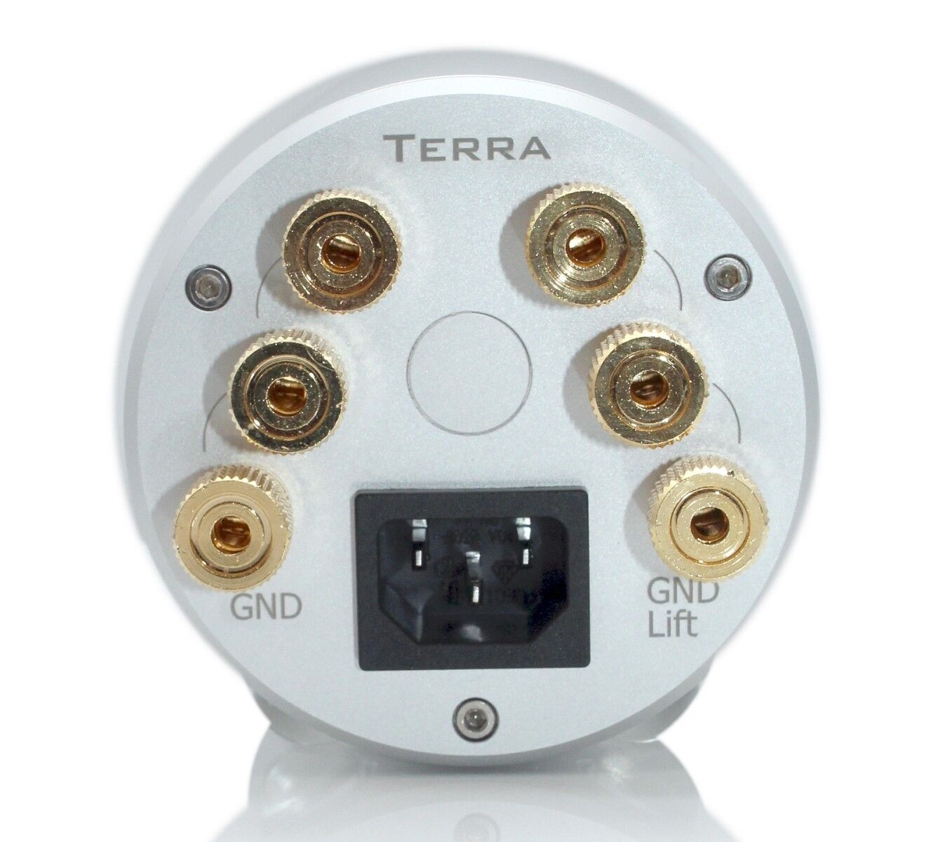 Die Terra verfügt über ein sternförmiges Endpunkt-Design, das Brummschleifen zuverlässig vermeidet. Das Gehäuse ist mit speziellem Sand gefüllt, der gezielt Vibrationen und elektromagnetische Einstreuungen dämpft – für ein unverfälschtes Klangerlebnis. Ein Stecker, der ausschließlich mit der Schutzerde verbunden ist, sorgt dafür, dass die Erdung über die Steckdose erfolgt, ohne eine direkte Verbindung zum Netzstrom herzustellen. Dies bietet zusätzliche Sicherheit und verhindert unerwünschte Störungen.