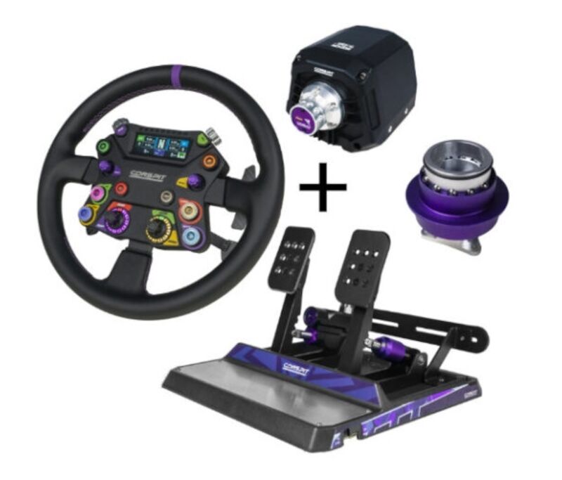 Bundle aus Conspit ARES APEX Wheelbase, 310 APEX-Lenkrad und 2er-Pedalset mit 2-Kammer Hydraulik, 8 Nm Drehmoment, Lenkrad mit 2,99″-Zoll-Display und ARGB-Beleuchtung, Quick-Release-Adapter inklusive.