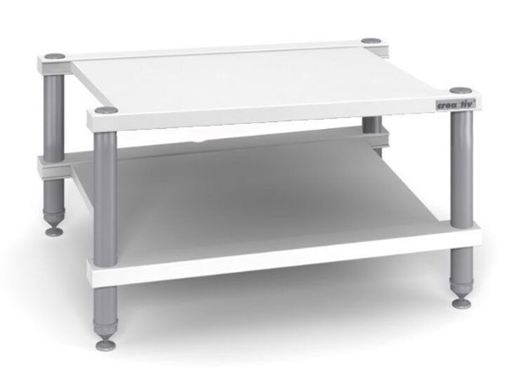 Das Audio 1 Rack zeichnet sich durch die Kombination von Vollholz und Multiplex aus. Dieser Materialmix sorgt für gesteigerte Stabilität und nochmals verbesserte Klangeigenschaften.Das Audio-Racksystem verfügt über mit Quarzsand gefüllte Vier-Kammer-Antiresonanzrohre aus Aluminium und über Bodenkegel. Wie bei allen creaktiv Racksystemen gibt es auch für das Audio-Rack Aufbau-Ebenen und passende Entkopplungsböden.