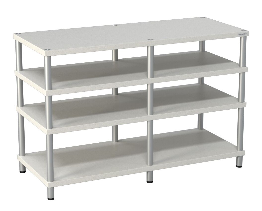 Geben sie ihrer Anlage die Gelegenheit, so zu klingen, wie sie es tatsächlich kann. Dazu gehört eine hochwertige Stellfläche, die Ihre elektronischen Komponenten frei von Störungen hält. Unsere modular ausbaufähiges CREAKTIV Trend 2 lässt sich problemlos passend zu Ihren Komponenten konfigurieren. Dank der großen Nutzfläche je Stellfläche von 51,5cm in der Breite und 48cm in der Tiefe, sowie einer Belastbarkeit von je maximal 110kg pro Ebene finden hier fast alle aktuellen Komponenten ihren Platz. Die Abstände zwischen den Ebenen lassen sich individuell von 60 bis 450mm konfigurieren und anpassen. Sie können jederzeit nachträglich weitere Rohre bestellen, falls sich die Komponenten ihrer HiFi-Anlage verändern. Dank den im Lieferumfang enthaltenen CREAKTIV Bodenstellfüßen können sie das Rack individuell selbst an einer unebenen Stelle aufstellen. Unsere Bodenstellfüße werden von unten eingeschraubt und somit kann jeder einzelne Fuß in der Höhe verstellt werden. Ebenfalls im Lieferumfang enthalten sind 6 x 250mm Rohre und jeweils 6 x 170mm Rohre für jede weitere Ebene. Bei unseren CREAKTIV Rohren handelt es sich um ein spezielles 4 Kammer Antiresonanz-Rohr. Unser CREAKTIV Trend 2 HiFi-Rack kann durch gefüllte und gedämpfte Rohre und Bodenkegel, oder Bodenrollen zusätzlich aufgerüstet werden. Die CREAKTIV Bodenkegel und Bodenrollen können auch jederzeit nachträglich installiert werden.