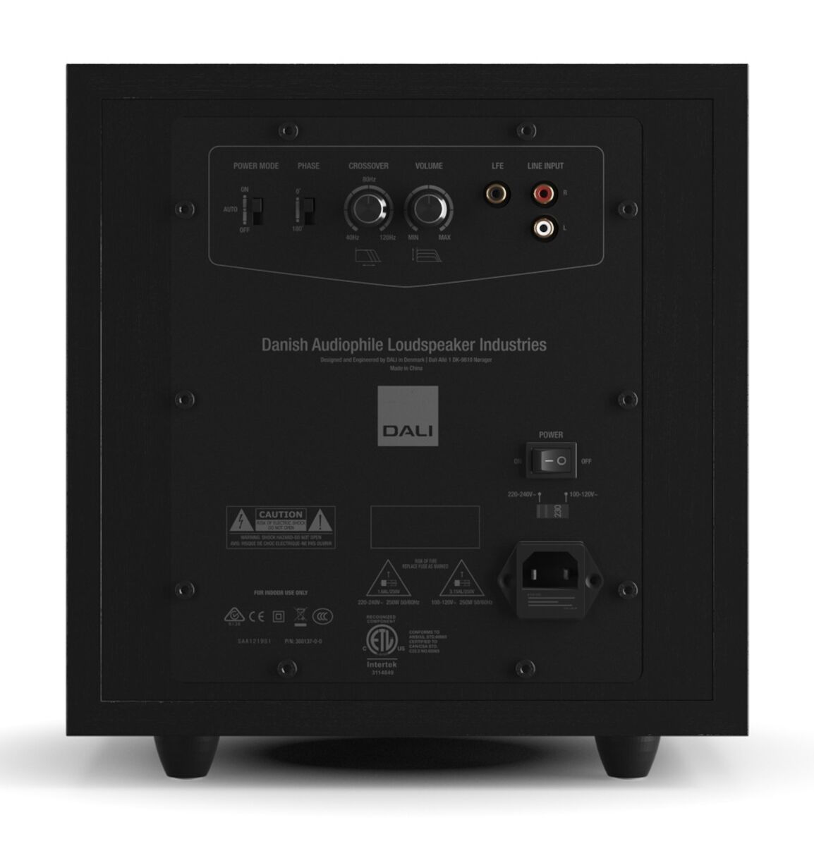 Einen maßgeblichen Beitrag zur hohen Qualität des SUB E-9F liefert auch die verbaute Digitalendstufe. Sie mobilisiert 170 Watt Dauer- und 220 Watt Impulsleistung und lässt sich mit den integrierten Reglern für Lautstärke und obere Trennfrequenz (Regelbereich 40 bis 120 Hertz) sowie einem Phasenumkehrschalter optimal auf die jeweils vorherrschenden akustischen Bedingungen justieren. Angesteuert wird der DALI-Sub wahlweise über den LFE-Ausgang eines Heimkino-Receivers oder mit einem Stereo-Signal.
