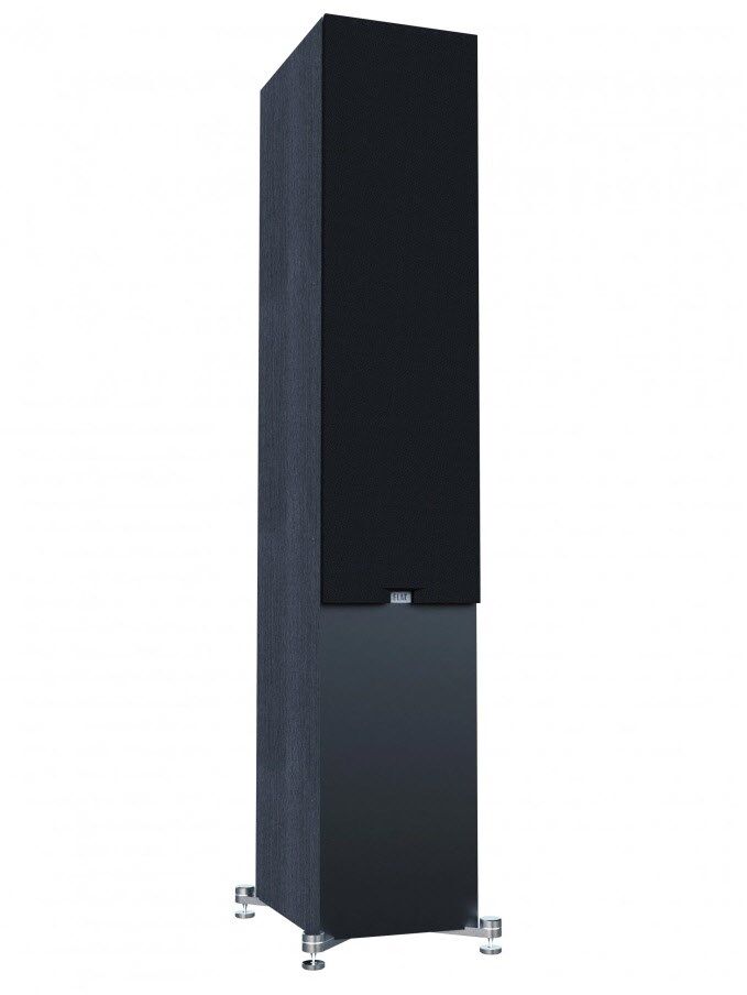 - Gehäuseoberfläche Schwarzes Eschenvinyl, satinschwarze Vinylfront