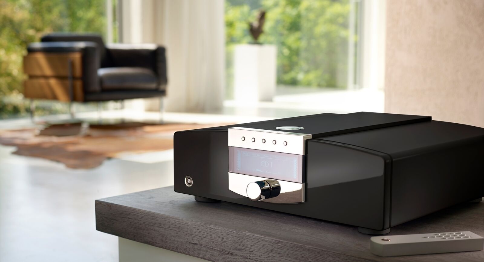 So aufgeräumt kann ein Vollverstärker sein: Ein-Ausschalter, fünf dezente Funktionstasten, sanft schimmerndes Display und ein solider Lautstärke-Knopf. Bei so viel Purismus darf es denn wenigstens ein Element sein, das mehr aufs Auge zielt – eine eingelassene, 4 Zentimeter große Acrylscheibe mit dreidimensionalem MBL-Logo, beleuchtet von einer Corona, die der Serie ihren Namen gibt. Doch auch hier ist Hand anlegen erwünscht – das Acryl-Rund dimmt die Display-Helligkeit. Hinter der 16 Millimeter starken Frontplatte geht es dann wieder streng funktional zu: Die Eingangsstufe besteht aus hochwertigen, diskret aufgebauten Elektronikbauteilen. Sie korrespondieren mit einem soliden Potentiometer, das seine Stellungsbefehle von der Fernbedienung mit Motorkraft umsetzt. Für die 2 x 300 Watt Nennleistung an 4 Ohm sorgt eine Phalanx von zwölf Lade-Kondensatoren, die von einem Mu-Metall-geschirmten Leistungstrafo befeuert werden. Orchestriert wird die üppig bestückte Elektronikabteilung vom LASA-Schaltungskonzept. Es sorgt für stabile Verhältnisse, auch an diffizilen Lautsprecherlasten, und löst klanglich ein, was Anmutung und Ausstrahlung dieses Understatement-Produktes versprechen: Klarheit, Gradlinigkeit und unaufdringlichen Charme, dem man sich kaum entziehen kann.