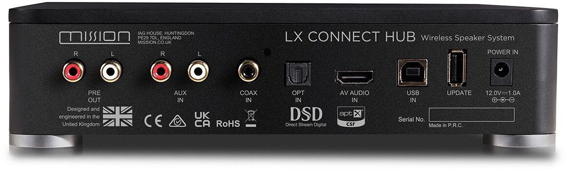 Der LX CONNECT HUB fungiert als zentrale Konsole für alle Ihre Musikquellen, inklusive analoger, optischer und koaxialer Digitaleingänge. Er ist ein eigenständiger, hochspezialisierter Audio-Hub. Es gibt einen speziellen HDMI ARC-Anschluss, der eine High-Fidelity Performance für TV, Filme und Spiele bietet, während die Bluetooth aptX-Verbindung das kabellose Streaming von hochauflösendem Audio von Tablets und Smartphones erlaubt.