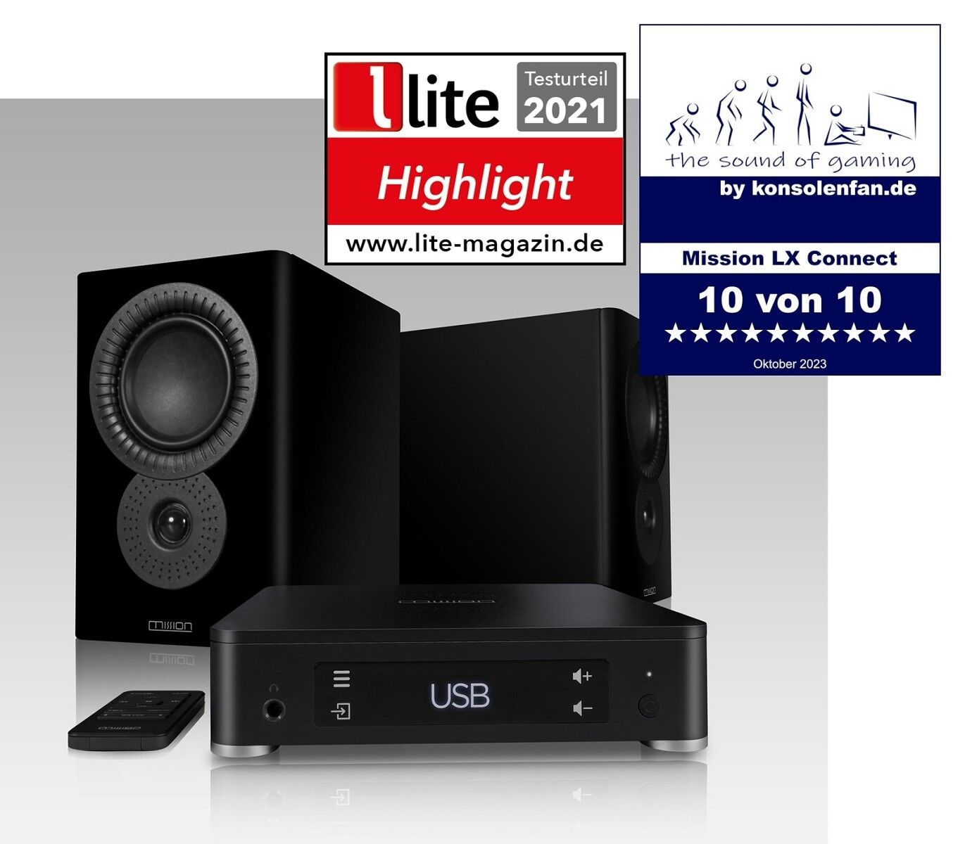 Die Lautsprecher basieren auf den Mission LX-2 MKII-Lautsprechern. Sie sind jedoch mit speziell entwickelten digitalen Hochleistungs-Verstärkermodulen, die 50 Watt High-Fidelity-Leistung aus jeder Box liefern, kombiniert (100 W pro System). In Anlehnung an das Design und die Leistung der LX MKII-Serie haben die LX CONNECT Lautsprecher die für Mission typische 'Inverted Driver Geometry' und eine präzise abgestimmte Frequenzweiche, um eine verbesserte Einschwingzeit und erstaunliche Detailtreue zu erzielen. Mission DiaDrive Basseinheiten bieten eine überragende Kontrolle der Tieftonmembran, während eine optimierte Hochtonwiedergabe und ein überarbeitetes Gehäuseverstrebungssystem dazu beitragen, ein Lautsprechersystem zu kreieren, das seine Preisklasse bei Weitem übertrifft.