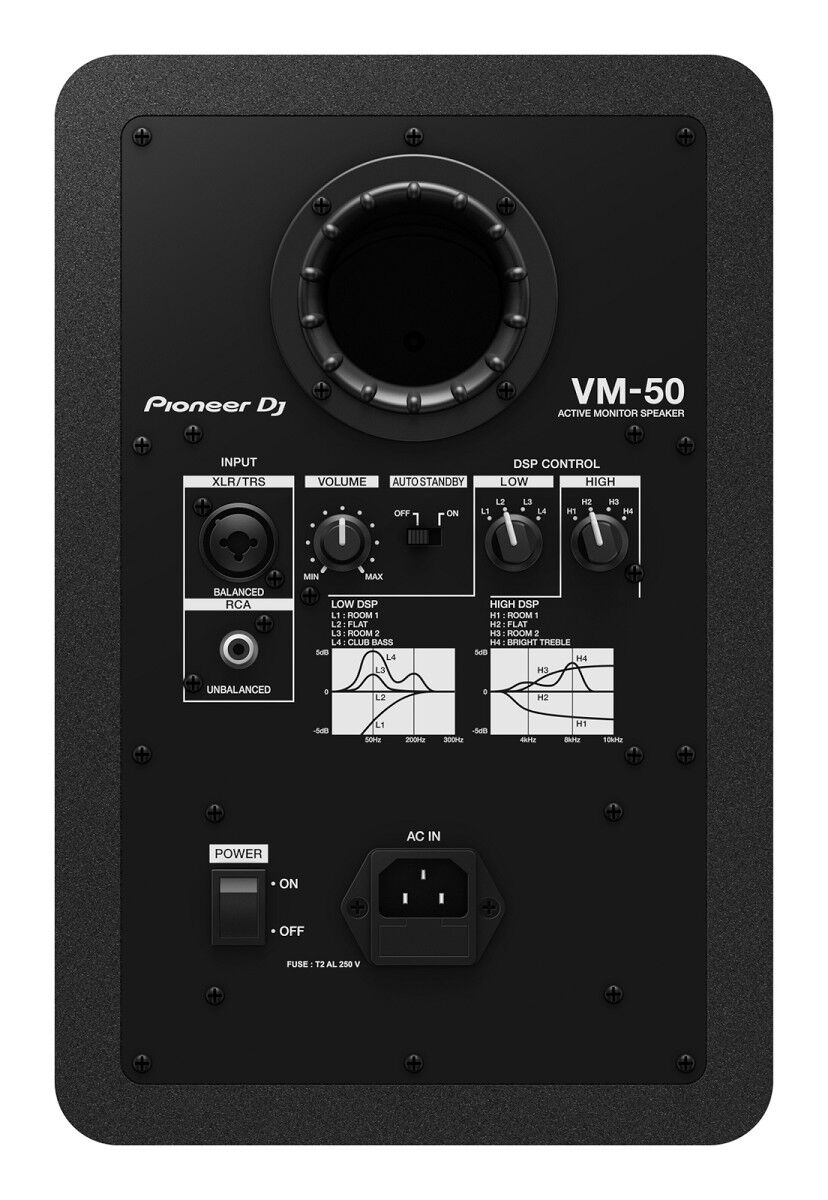 Alle Lautsprecher der VM-Serie sind flach gestimmt, um sicherzustellen, deine Musik natürlich klingt. Jeder Lautsprecher enthält DSP-Einstellungen, damit du die Ausgabe optimieren und für jeden Raum den perfekten Sound finden kannst. Auf der Rückseite befinden sich 2 Regler: Low EQ und High EQ. Ganz einfach und ohne hinsehen zu müssen, kannst du die Regler in jeweils 4 verschiedene Positionen rasten, wodurch du 16 mögliche EQ-Einstellungen erhältst. Wähle je nach Form, Größe und Konstruktion des Raums diejenige aus, die am besten zum Auflegen oder Produzieren von Musik bei dir zuhause oder im Studio geeignet ist.