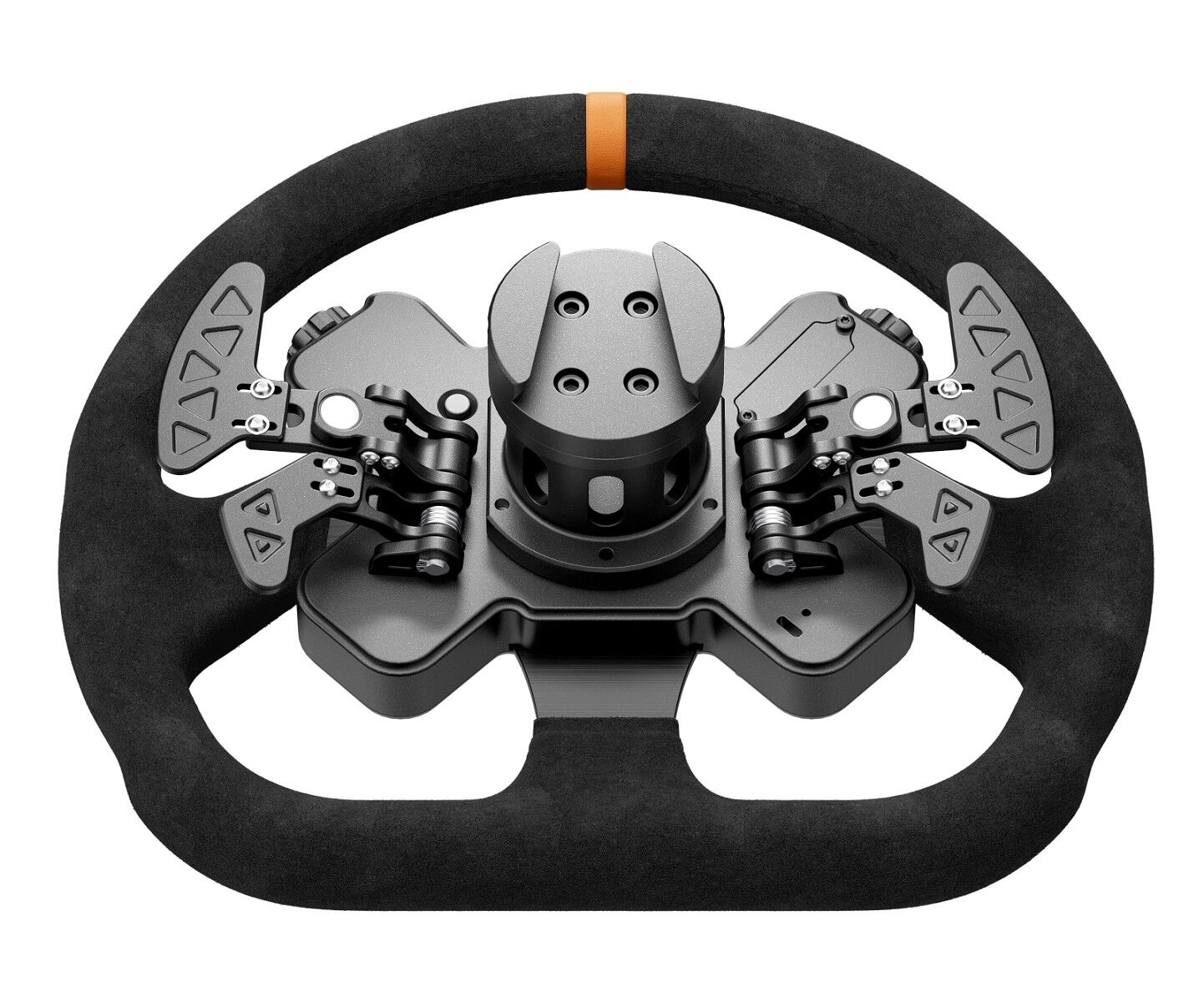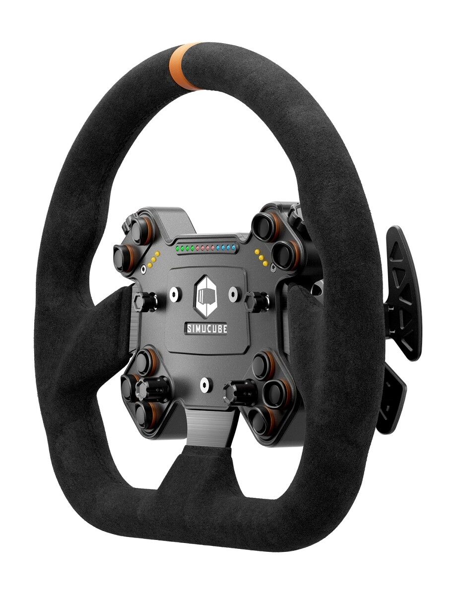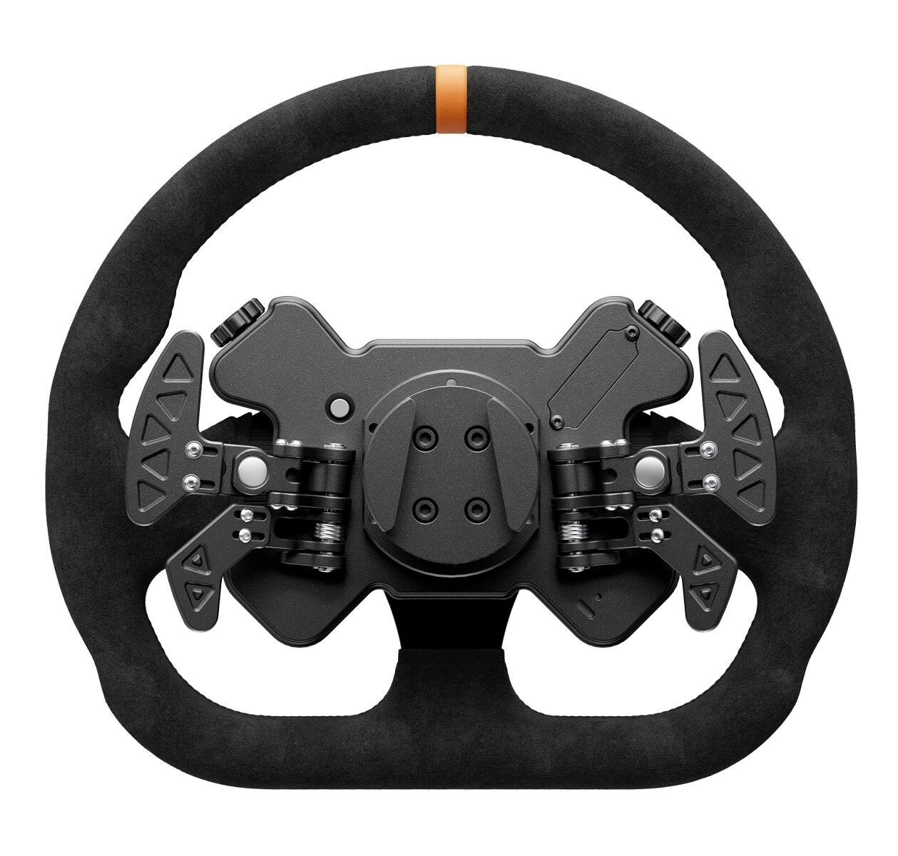 Ein ausgezeichneter, vielseitiger High-End-Sim-Racing-Lenkradkranz, der sich großartig anfühlt und ein hervorragendes Fahrerlebnis bietet. Die Tasten und Bedienelemente sind genau dort platziert, wo du sie brauchst, um das Rennfahren intuitiv zu gestalten. Die Schaltwippen sind speziell für Rennfahrer entwickelt worden und bieten ein zufriedenstellendes, müheloses Schaltgefühl.