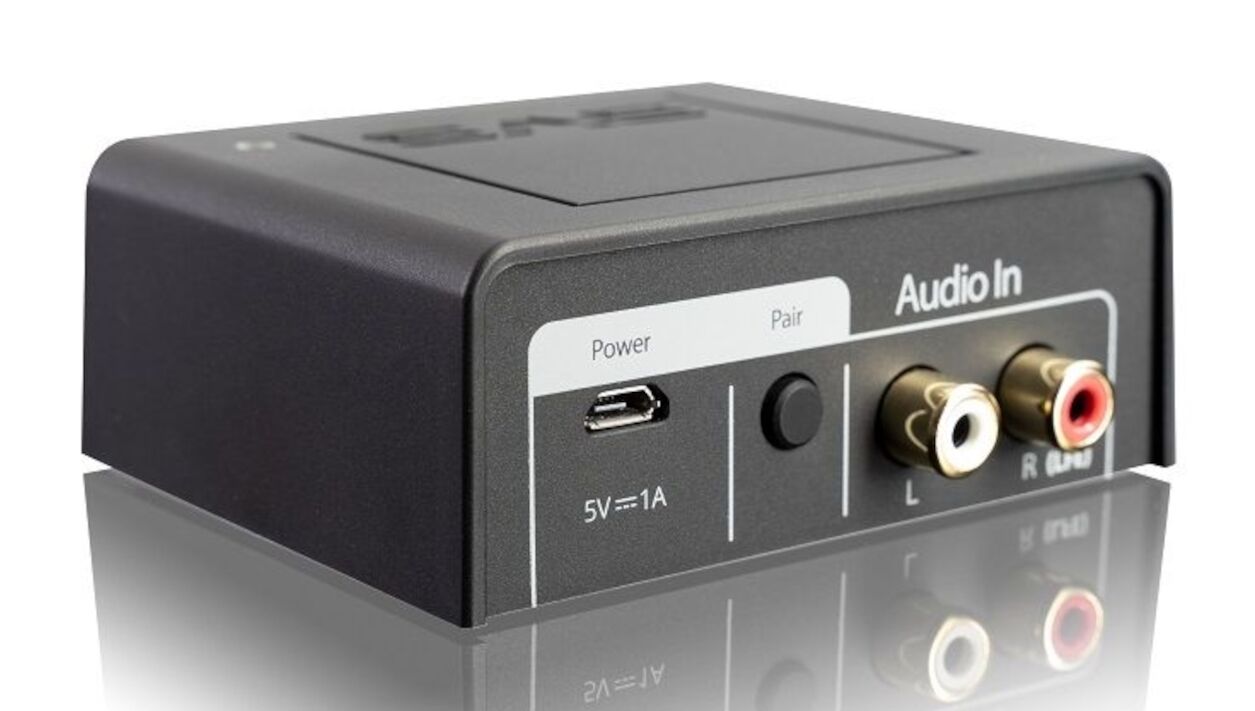 Schließen Sie den Transmitter einfach über eine RCA-Verbindung an eine Audioquelle an und verbinden Sie den Receiver mit einem Subwoofer oder Aktivlautsprecher. Sender und Empfänger sind vorgepaart, und die Einrichtung dauert nur wenige Minuten: