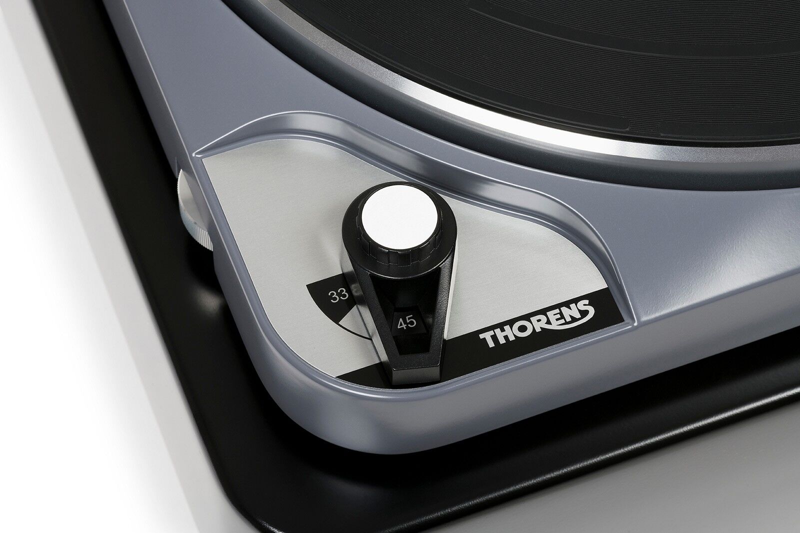 Für viel Flexibilität bei der Wahl des Tonabnehmers sorgt neben den umfangreichen Einstellmöglichkeiten zudem die beiliegende Headshell. Im Lieferumfang findet sich außerdem ein zusätzliches, etwas schwereres Gegengewicht, das zum separat erhältlichen Tonabnehmer Thorens SPU TD 124 passt. Dabei handelt es sich um eine speziell auf den TD 124 DD abgestimmte Version des ebenfalls legendären Ortofon SPU, die Thorens gemeinsam mit Ortofon für Fans des Besonderen entwickelt hat.