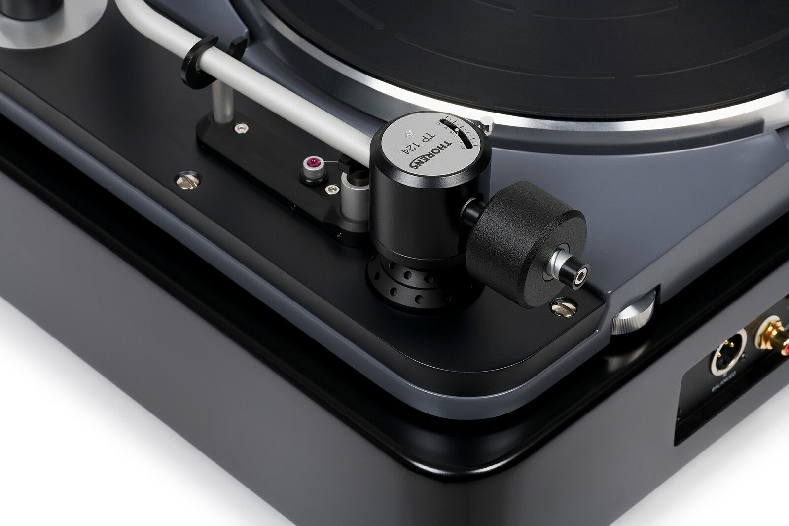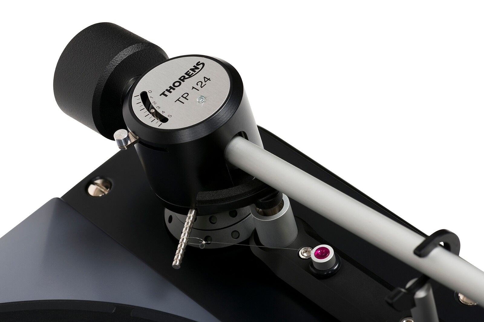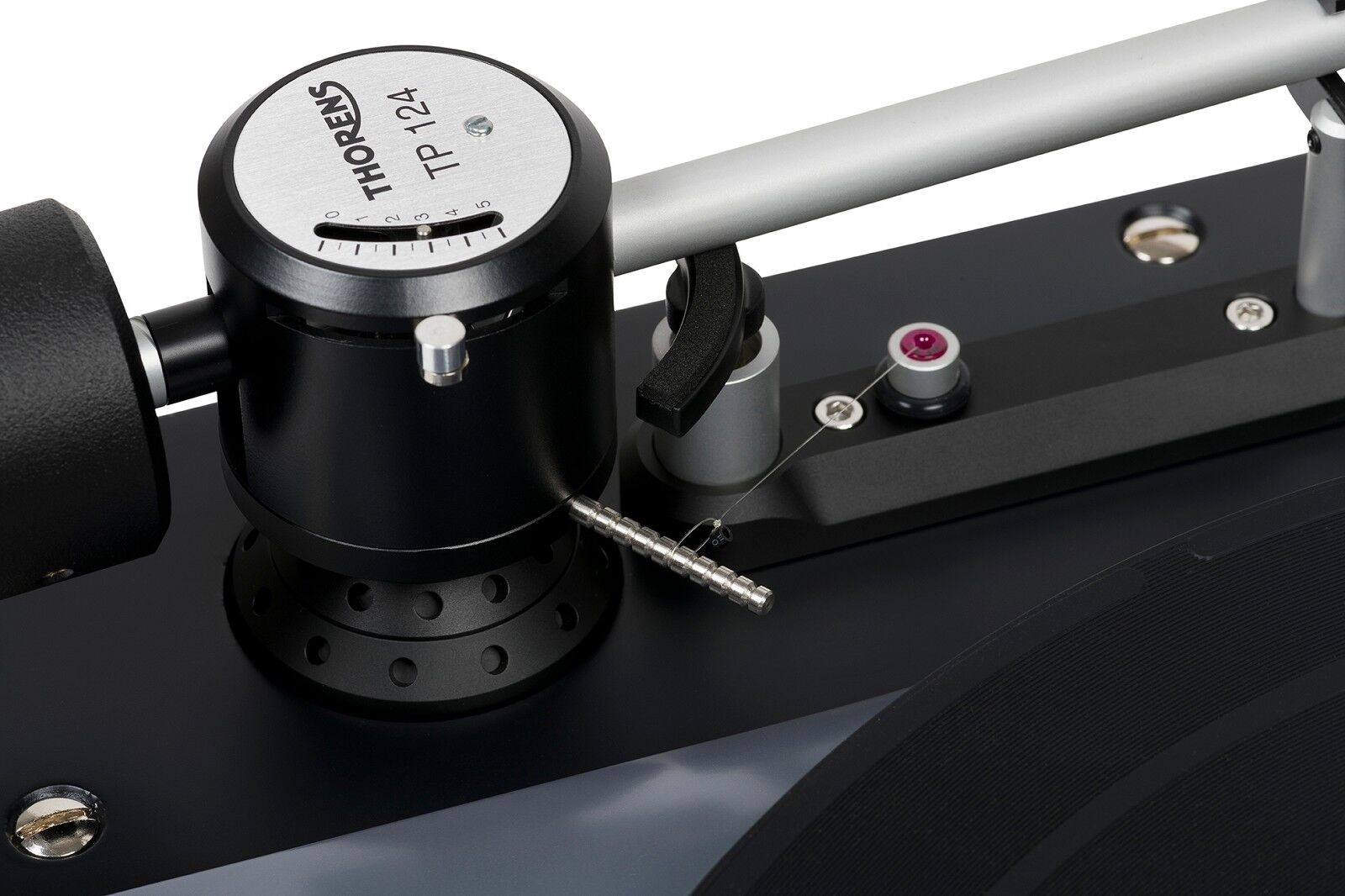 Der ebenfalls neue Tonarm TP 124 kann in allen Parametern präzise auf den verwendeten Tonabnehmer eingestellt werden und verfügt über eine innovative Antiskating-Lösung mit Rubin-Lager. Außerdem haben die Entwickler dem TD 124 DD einen patentierten neuen elektrischen Tonarm-Lift spendiert, der ein schonendes Einsetzen und Ausheben der Nadel sicherstellt.