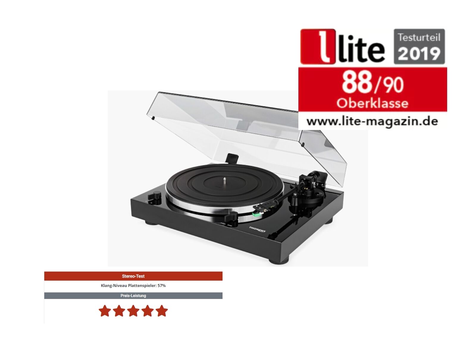 - Lieferumfang Steckernetztteil, Staubschutz (Acryl), Cinch Kabel, Thorens-Gummimatte, Bedienungsanleitung