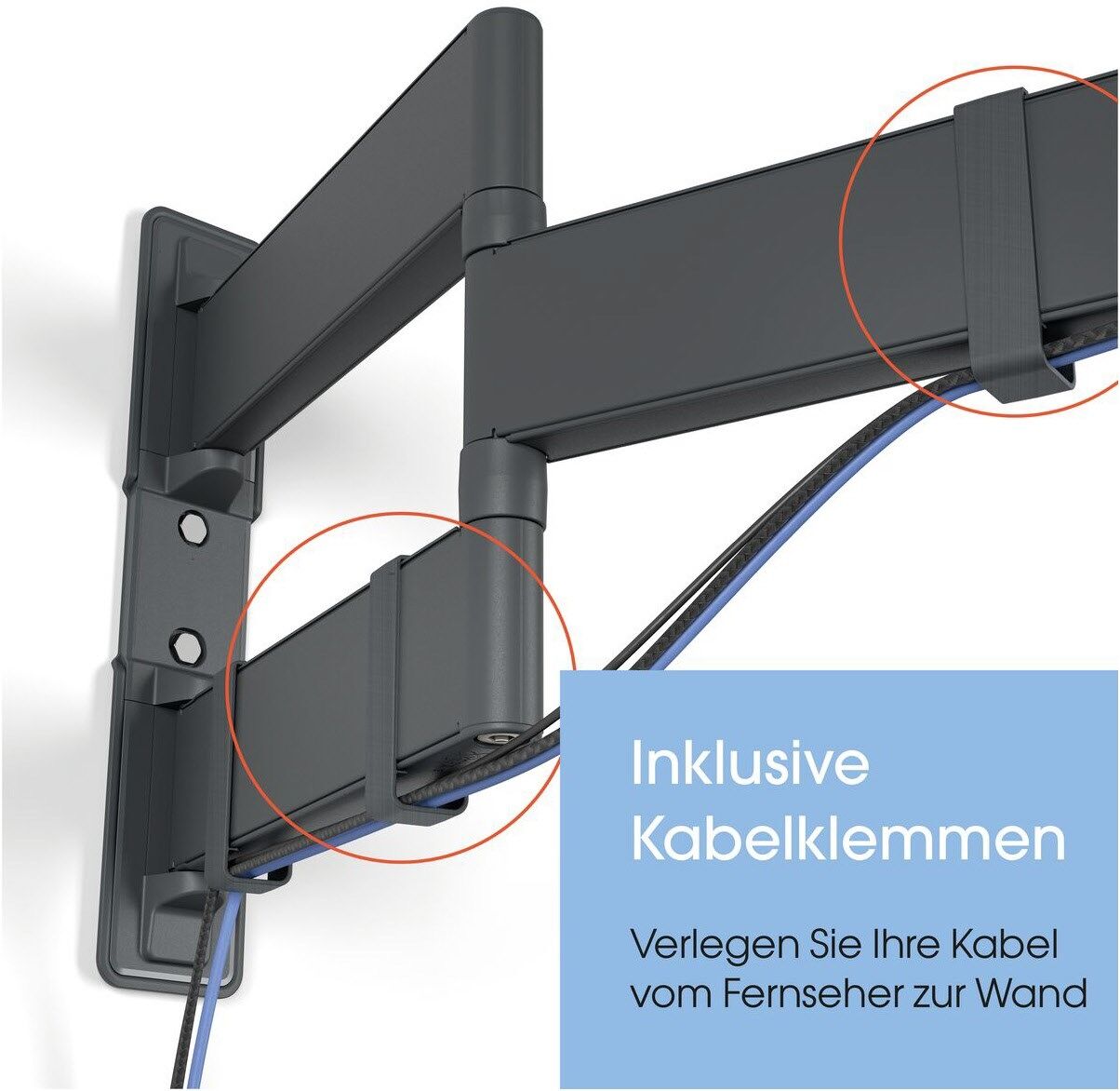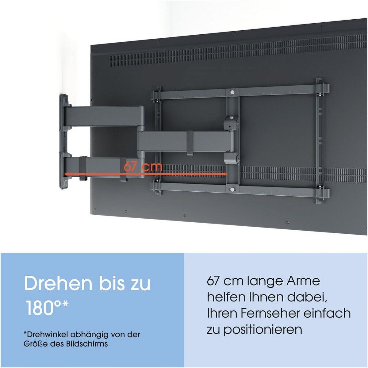 Das ist die optimale Lösung: Die stärkste Full-Motion+ TV-Wandhalterung aus unserer familienfreundlichen COMFORT-Serie. Stylisch und sicher. Die TV-Wandhalterung ist für TVs von bis zu 100 Zoll und mit einem Gewicht von bis zu 55 kg geeignet. Je nach Größe Ihres Fernsehers kann diese TV-Wandhalterung für optimalen Sehkomfort um bis zu 180° gedreht und um bis zu 10° geneigt werden. Ihr Fernseher wird garantiert sicher und fest montiert. Wenn Sie Ihren großen Fernseher aus jedem Blickwinkel in vollem Umfang genießen möchten, ist dies die richtige TV-Wandhalterung für Sie.
