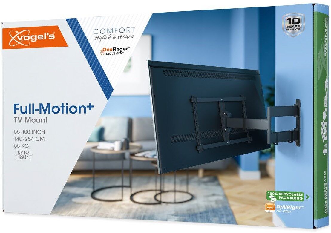 Die elegante COMFORT Full-Motion+ TV-Wandhalterung von Vogel's ist die ideale Wahl für optimalen Sehkomfort und unbeschwertes Vergnügen Ihres großen Fernsehers. Die Halterung verfügt über extrem lange Arme und ist speziell für große TVs von 55 bis 100 Zoll konzipiert. Selbst TVs mit einem Gewicht von bis zu 55 kg können mit dieser schwenkbaren TV-Wandhalterung sicher befestigt werden.
