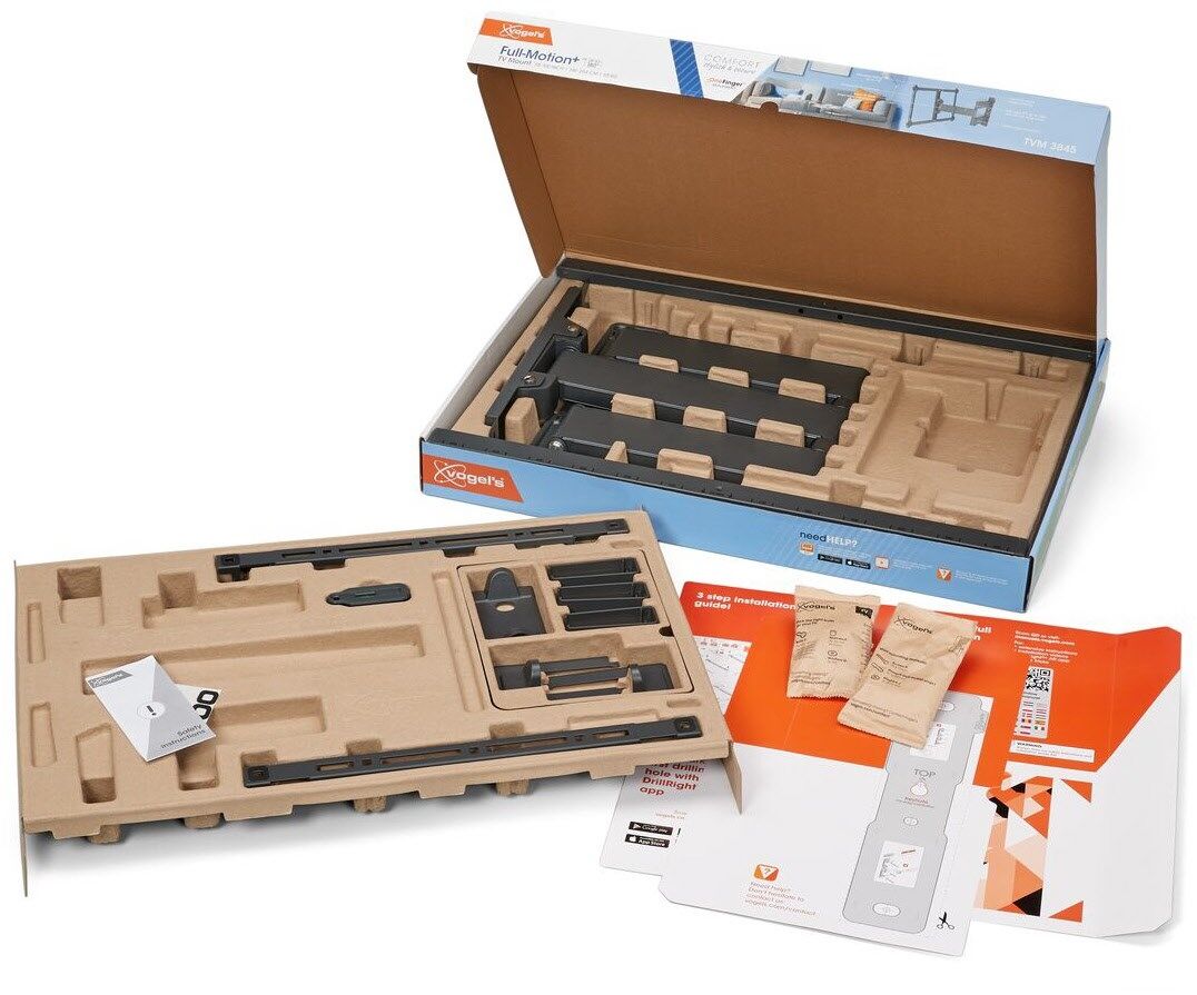Die Installation ist einfach. Eine Bohrschablone, Schrauben, DuoPower-Dübel von fischer®, Kabelbinder und eine Wasserwaage sind im Lieferumfang enthalten. Und die kostenlose Vogel's DrillRight™ AR App hilft Ihnen dabei, Ihr erstes Bohrloch zu markieren.