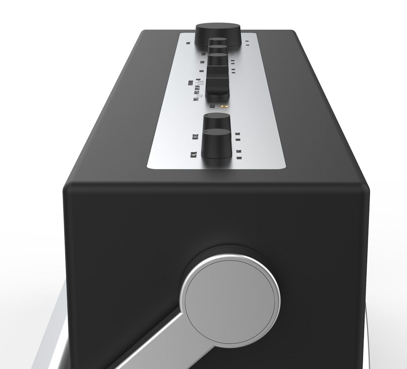 Doch diese Boombox ist mehr als nur Retro: Bluetooth 5.4, ein wiederaufladbarer und austauschbarer Akku, Mikrofoneingang, fein abgestimmte Klangregelung (Bass, Höhen, Balance), beleuchtete VU-Meter und sogar eine Verstärkerfunktion für deine Gitarre. Bereit für ein Rap-Battle oder eine Karaoke-Nacht? Einfach zwei kabellose Mikrofone anschließen und loslegen.