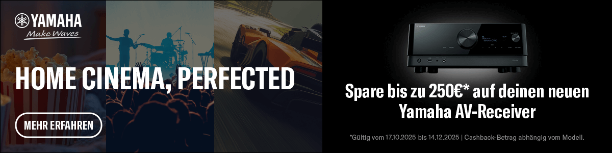 Verbessern Sie Ihr Audioerlebnis und erhalten Sie bis zu 250,-€ Cashback* auf Yamaha AV-Receiver!